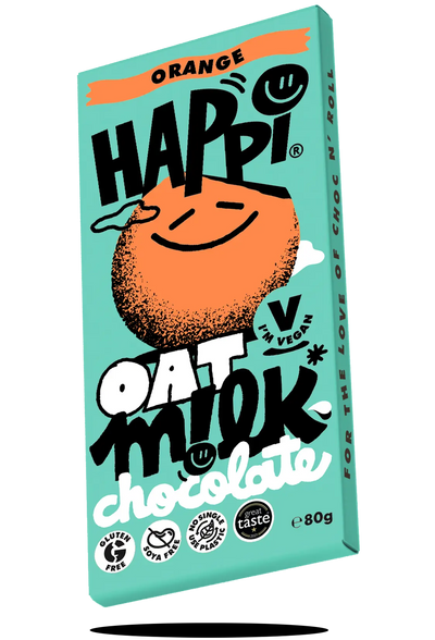 SMOOTH & ZESTY ORANGE M!LK CHOCOLATE, MADE FROM OAT MILK... PLANT BASEDVEGAN FRIENDLY FULLY SUSTAINABLE ETHICALLY SOURCED ALSO AVAILABLE...